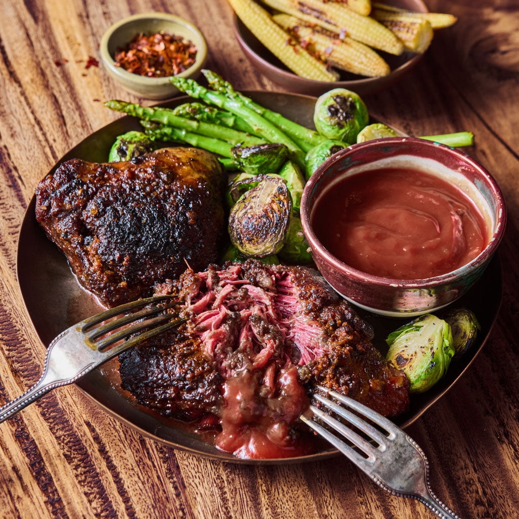 A hardworking cut, and exactly why it rewards proper treatment. We brine them, confit them slowly to seal in moisture and richness, then finish them in the smoker so warmth and depth run all the way through the meat, not just the surface. The result is spoon-tender, fall-apart beef with silkiness, weight, and flavor in every pull. Deep, savory, and almost impossible to stop reaching for.